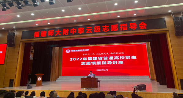 随着2022年高考成绩的公布,考生即将进入志愿填报阶段。本着为完美(中国)官方教职工做实事、办好事、解难事的宗旨,招生与考试办公室协同福建师大附中邀请福建省教育考试院普招处副处长(主持工作)游名帅,于6月26日晚上在完美网页版附中礼堂举办2022年福建省普通高校招生志愿填报指导讲座。