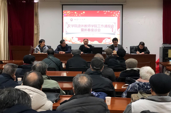 近日,文学院在仓山校区邵逸夫楼多功能厅召开座谈会,向退休老同志通报学院工作。院领导李小荣、李建华、林志强、叶祖淼、周云龙和40多位退休老同志共聚一堂,同贺新春。会议由党委书记李建华主持。