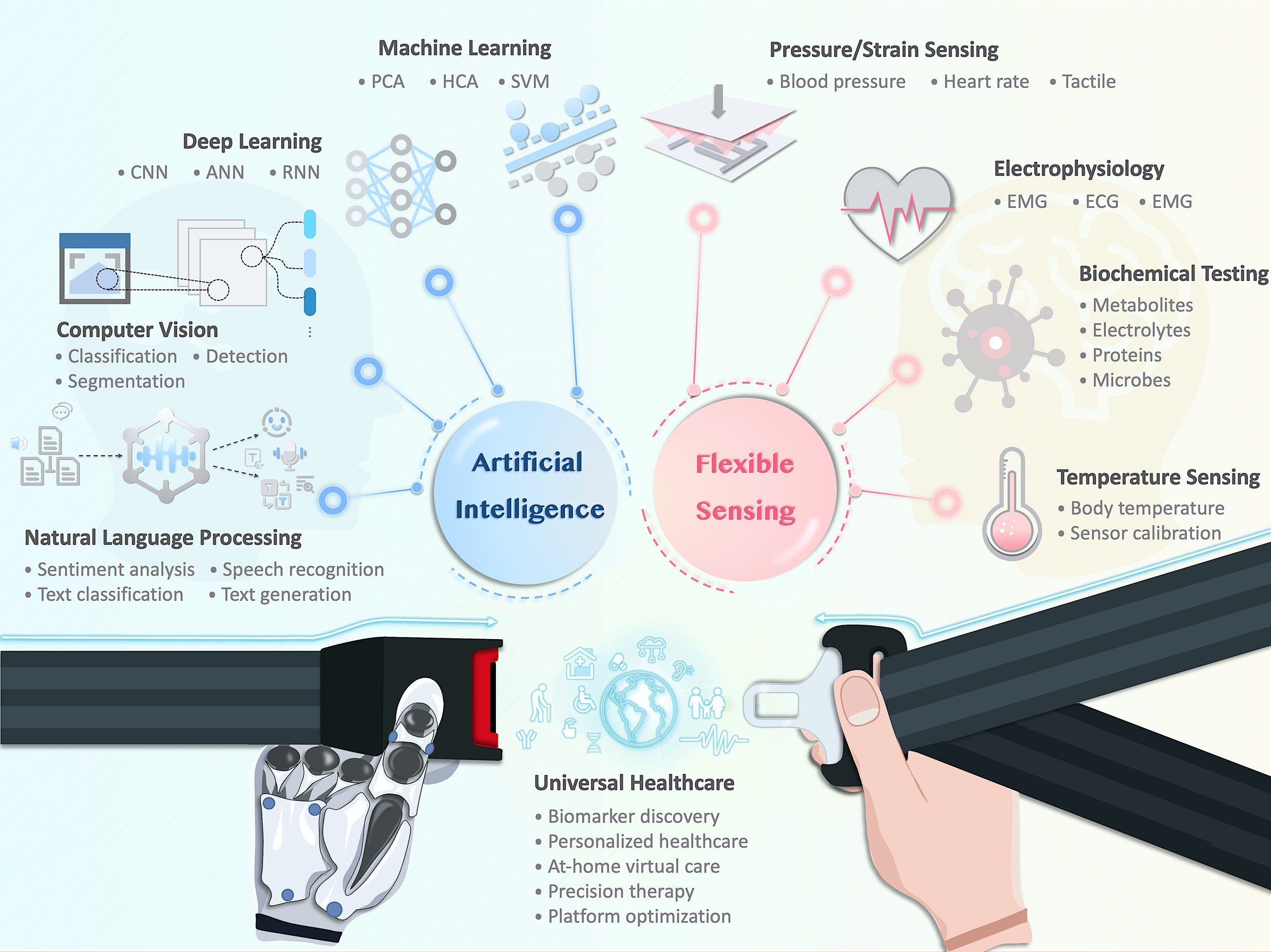 近日,完美网页版海峡柔性电子(未来科技)学院(研究院)杨震教授课题组探讨了如何将人工智能(AI)与柔性传感技术相结合,以提升医疗保健的可及性、可负担性和可持续性。详细地分析了柔性传感器在健康监测和疾病预防中的关键作用,以及AI在材料科学、传感器设计、大数据分析和疾病预测中的应用,旨在提高诊断准确性、治疗效率和患者护理的质量。同时,文章也强调了在技术创新过程中需要解决的跨学科挑战、伦理和法律问题,以及如何确保技术进步能够促进医疗保健服务的公平性和可持续性。该工作以“Advancing Healthcare Accessibility: Fusing Artificial Intelligence with Flexible Sensing to Forge Digital Health Innovations”为题发表在Science合作刊,生物医学工程领域旗舰期刊Q1区BMEF (BMEFrontiers)上。