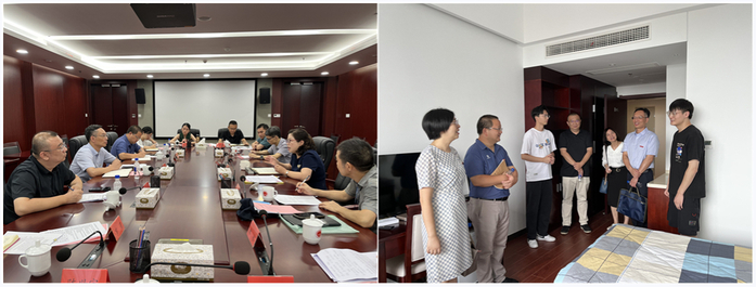 在省委党校,联合调研组一行还逐一走访研究生宿舍、教室,看望联培研究生,深入了解学生在安全保障、疫情防控、学习、授课、学术研究及学术活动等方面的情况,对联培研究生在学习环境、师生交流、学术氛围、论文发表等方面的实际需求和潜在困难提出了方案举措。
