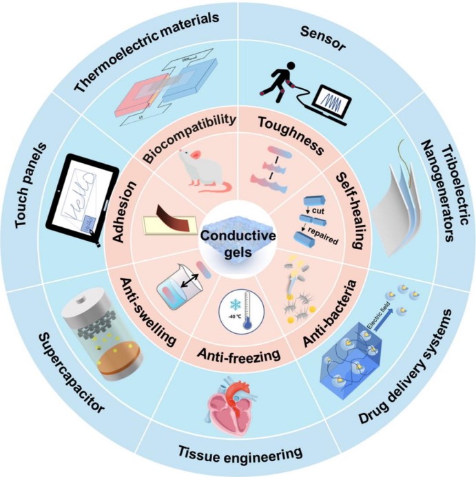 近日,完美网页版海峡柔性电子(未来科技)学院(研究院)杨震教授课题组探讨了导电材料在智能柔性电子领域的研究进展,提出了针对各种导电材料在凝胶中设计和制备的建设性指导策略。详细分析并总结了导电凝胶的韧性、粘性、生物相容性、自修复性、抗冻结性、抗溶胀性和抗菌性能。此外,还阐述了导电凝胶在传感器、热电材料、超级电容器、摩擦纳米发电机、触摸屏、药物输送系统和生物组织工程等领域的应用进展。在此基础上讨论了导电凝胶在未来所面临的机遇与挑战,并指出其集成到各种可穿戴和植入式应用的潜力,以及在柔性电子器件中的广阔前景,为推动柔性电子技术的发展提供了重要见解。该工作以“Intelligent conductive gels for advanced flexible electronics.”为题发表在国际TOP期刊《Chemical Engineering Journal》上。