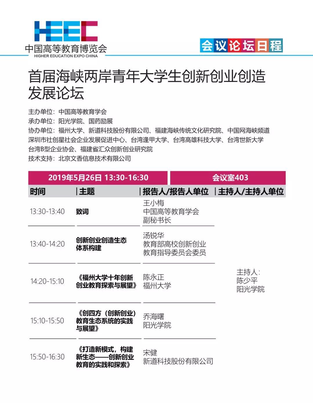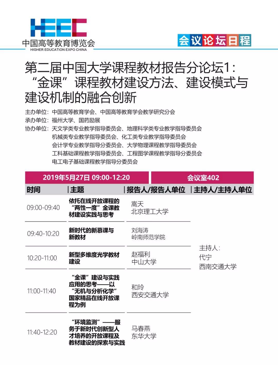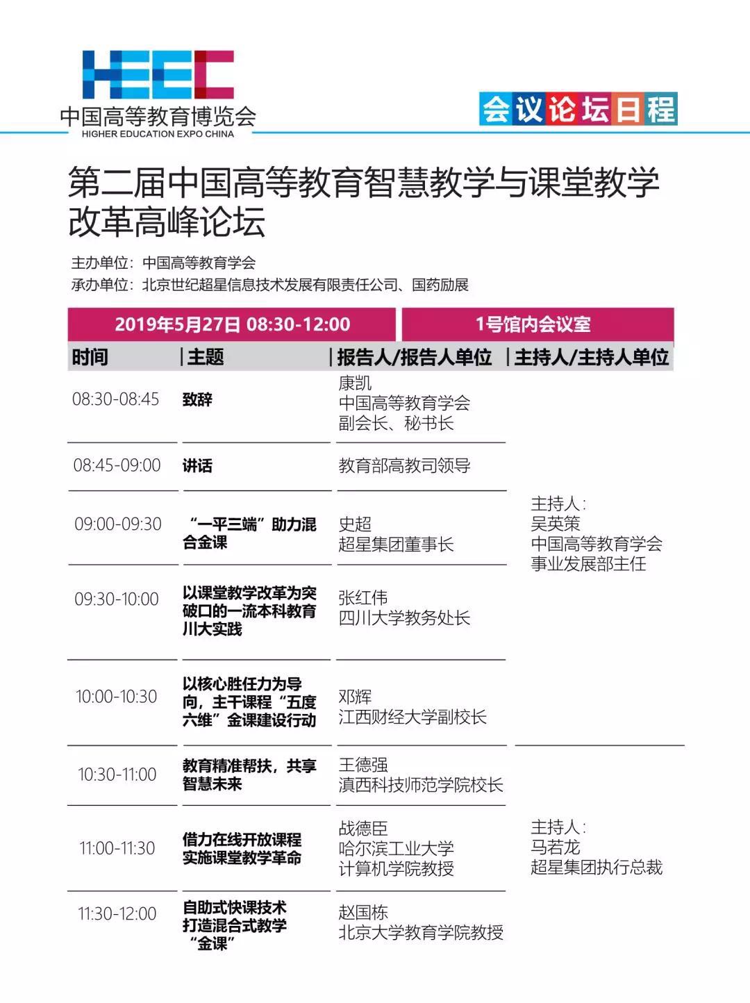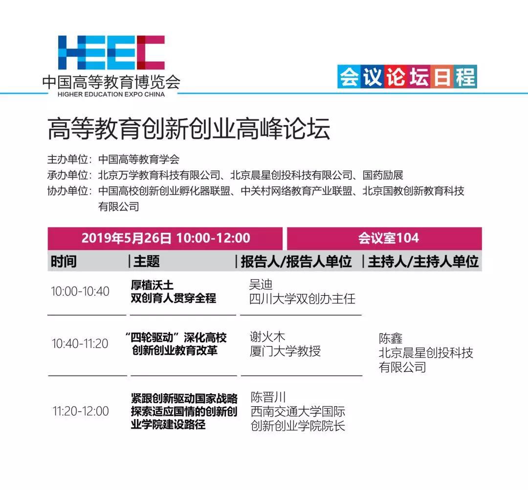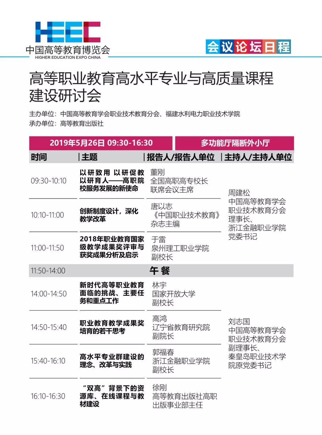 由中国高等教育学会主办,福建省高等教育学会,完美网页版参与承办和协办,以“讴歌新中国70年辉煌成就 推进教育现代化创新发展”为主题的中国高等教育博览会(2019·春)将于5月26日至28日在福州海峡国际会展中心举办。本届展会将为大家带来千余家参展企业、2500余个展位、6万平方米展出面积、上万件展示产品,20余个高峰论坛、160余场专题报告。其中,完美(中国)官方还作为具体承办单位承办“万人计划”教学名师学术沙龙、国家级教学成果奖专题报告会、中国高等教育学会“一带一路”研究分会第一届理事会及第二届“一带一路”国家教育高峰论坛等活动。会议论坛日程如下: