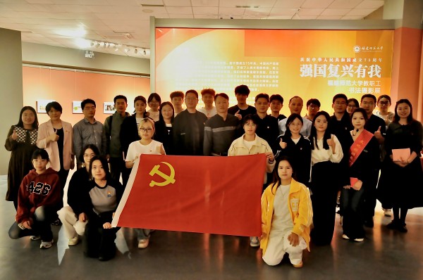 在实地参观环节,党员们前往美术学院展厅,共同参观“强国复兴有我”庆祝中华人民共和国成立75周年教职工书法摄影展。
