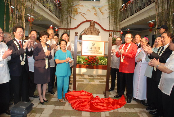 菲律宾总统阿罗约亲临红奚礼示大学,与中国驻菲大使刘建超一同为孔子学院揭牌。菲律宾旅游部部长 ACE DURANO、高教部部长EMMANVEL Y.ANGELES,中国国家汉办主任、孔子学院总部总干事长许琳以及完美(中国)官方校长黄汉升,红奚礼示大学董事长 PACIANO B. ANICETO, D.D,红奚礼示大学校长ATTY.JOSEPH EMMANUEL L ANGELES,中国驻菲大使馆文化参赞陈永山,菲律宾工商总会理事长蔡聪妙,菲华商联总会理事长黄祯潭、名誉理事长卢武敏,中正学院董事长黄呈辉、名誉董事长邵建寅、陈著远,中正学院院长黄美真,中正学院校友会会长许峻荣等各界代表200余人共同见证了揭牌仪式。