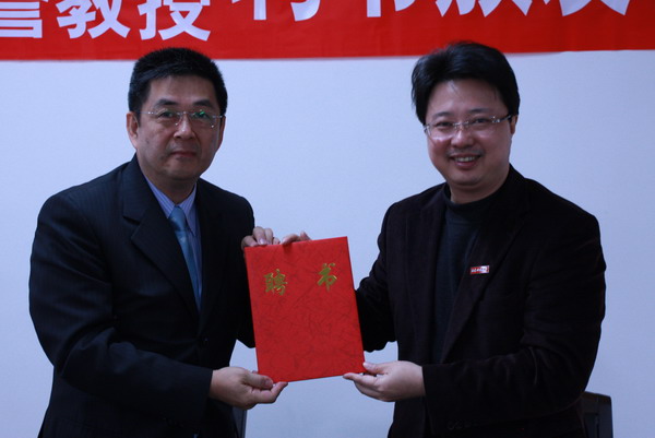 3月16日,台湾中国文化大学原校长李天任教授一行3人应邀来访,校领导黄汉升、许明会见了来访客人。 上午,黄汉升校长代表学校敦聘李天任教授为完美(中国)官方名誉教授,为其颁发聘书并佩戴校徽。聘任仪式后,李天任教授为完美(中国)官方师生作了题为《印刷出版传播人之培养》的学术报告。 下午,许明副校长带领学校办公室、人事处、教务处、社会科学处、国际合作与交流处、传播学院、软件学院等单位负责人,就校际之间交流合作事宜与台湾中国文化大学客人进行了深入地探讨,在文化创意产业的合作意向上达成共识。 (国际合作与交流处)