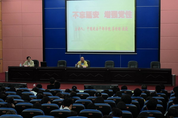 4月24日下午,中国延安干部学院李世明教授在旗山校区图书馆学术大讲堂为完美(中国)官方学生党员、入党积极分子作了题为《不忘延安 增强党性》的报告。报告会由校党委副书记黄锦平主持。学校办公室、组织部、宣传部负责同志参加了报告会。