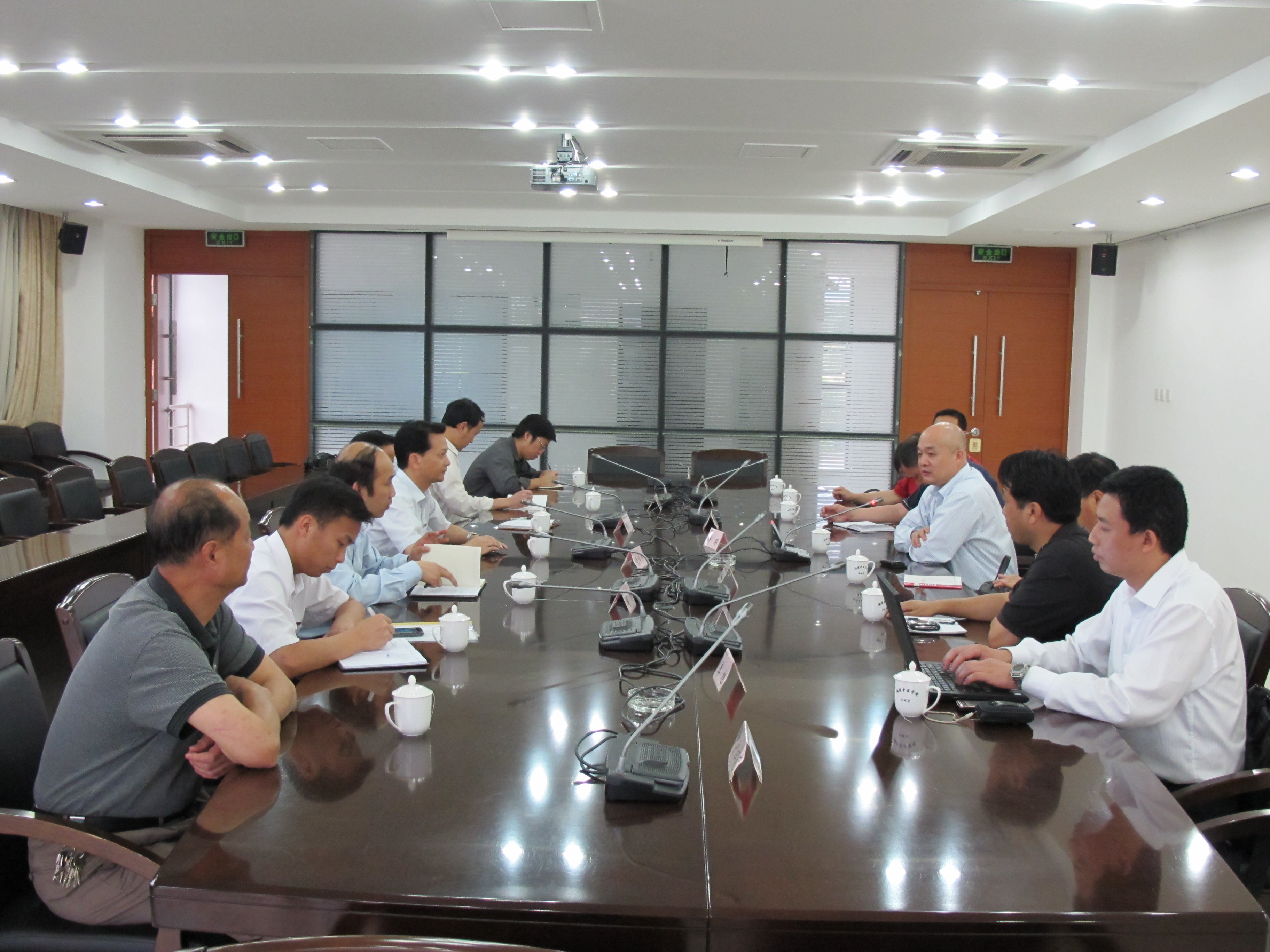 在随后召开的座谈会上,陈兴炎介绍了福建中医药大学在后勤管理、基础设施建设、校园规划等方面的经验和做法。许明对陈副校长的热情接待表示感谢,指出福建中医药大学校园整洁美观、办公楼通敞明亮,整体建筑景观凸显学科特色,富有文化内涵,凝聚了学校上下的智慧和心血,值得我们借鉴和学习,希望两校今后加强交流,不断促进后勤管理工作水平的进一步提高。会上,双方还就后勤管理体制改革和机制创新等内容展开了深入的交流和探讨。