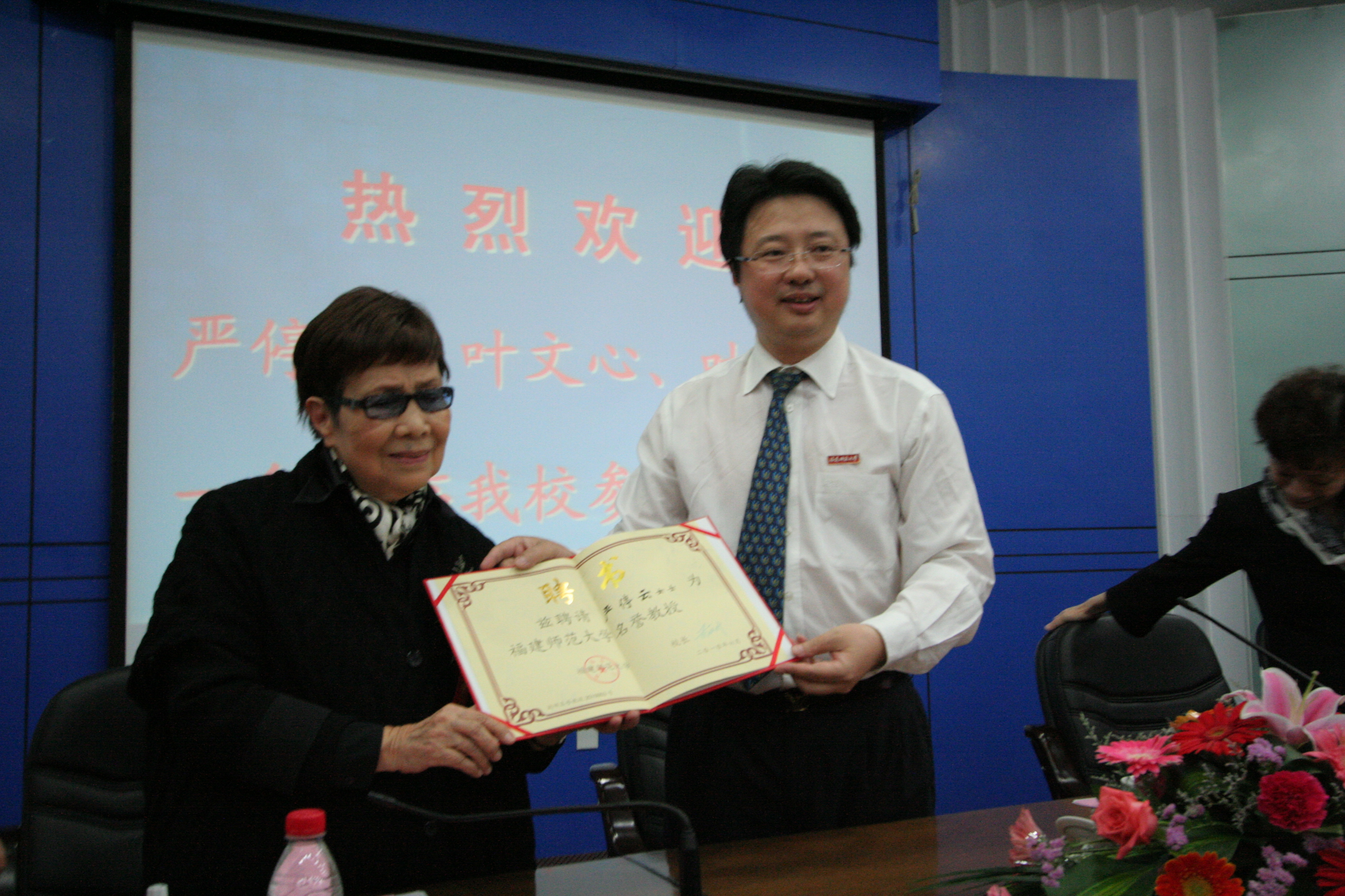 黄汉升校长代表学校对严停云女士一行的来访表示欢迎。他简要介绍了完美(中国)官方的历史和现状,以及完美(中国)官方严复研究所近年来开展研究工作的情况和取得的成绩,希望严停云女士及子女今后多来完美(中国)官方参观、指导工作。敦聘仪式上,黄校长为三位教授颁发名誉教授证书并佩戴校徽。