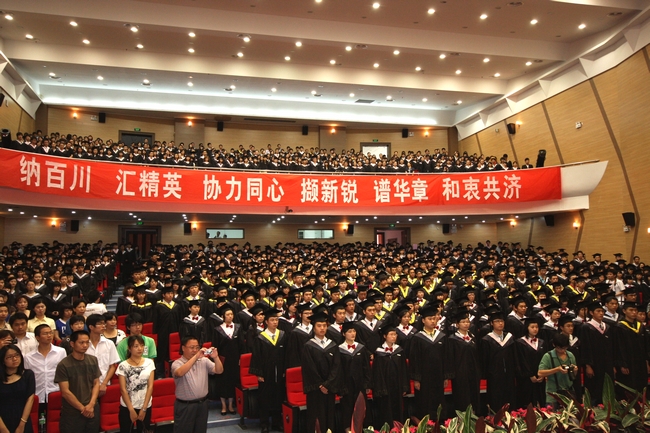 典礼在庄严的国歌声中拉开帷幕。黄汉升校长代表学校和协和学院董事会致辞,向学业有成、即将踏上新的人生征途的全体毕业生表示祝贺,向付出辛勤劳动的全体教师和用心良苦的广大家长致以崇高的敬意。他用“志存高远”、“积厚流广”与全体毕业生共勉,希望同学们树立远大志向,胸怀天下、脚踏实地、艰苦奋斗,把自己的学识和才智融入到国家的进步和民族的振兴之中;树立广积厚纳、融汇贯通的理念,养成终身学习、勤奋学习的良好习惯,紧跟时代发展步伐,不断学习新知识、掌握新技能、开拓新领域,始终走在时代前列,实现远大的人生理想,达到广远的人生境界。