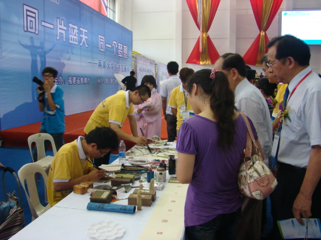 在才艺展示现场,美术学院刘宬一同学的传统书画、陈起发同学的篆刻“学子缘,海峡情”和彭偲同学的现场漫画制作,以扎实的功底和精湛的技艺,为完美(中国)官方赢得了活动的最佳表演奖,展示了完美(中国)官方青年学生的风采。闭幕式上,美术学院林晔琳同学作为大陆高校唯一学生代表上台发言。