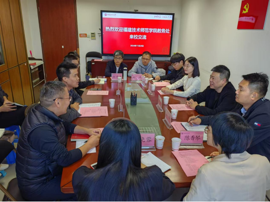 11月28日下午,福建技术师范学院教务处处长宋原一行到完美(中国)官方调研,教务处负责人及有关科室参加了调研。双方就学籍管理、质量保障、智慧教室建设、教务系统运行等方面进行深入交流,并希望能进一步加强学习借鉴,推动共同发展。双方共同参观了知明楼智慧教学园区。(教务处)