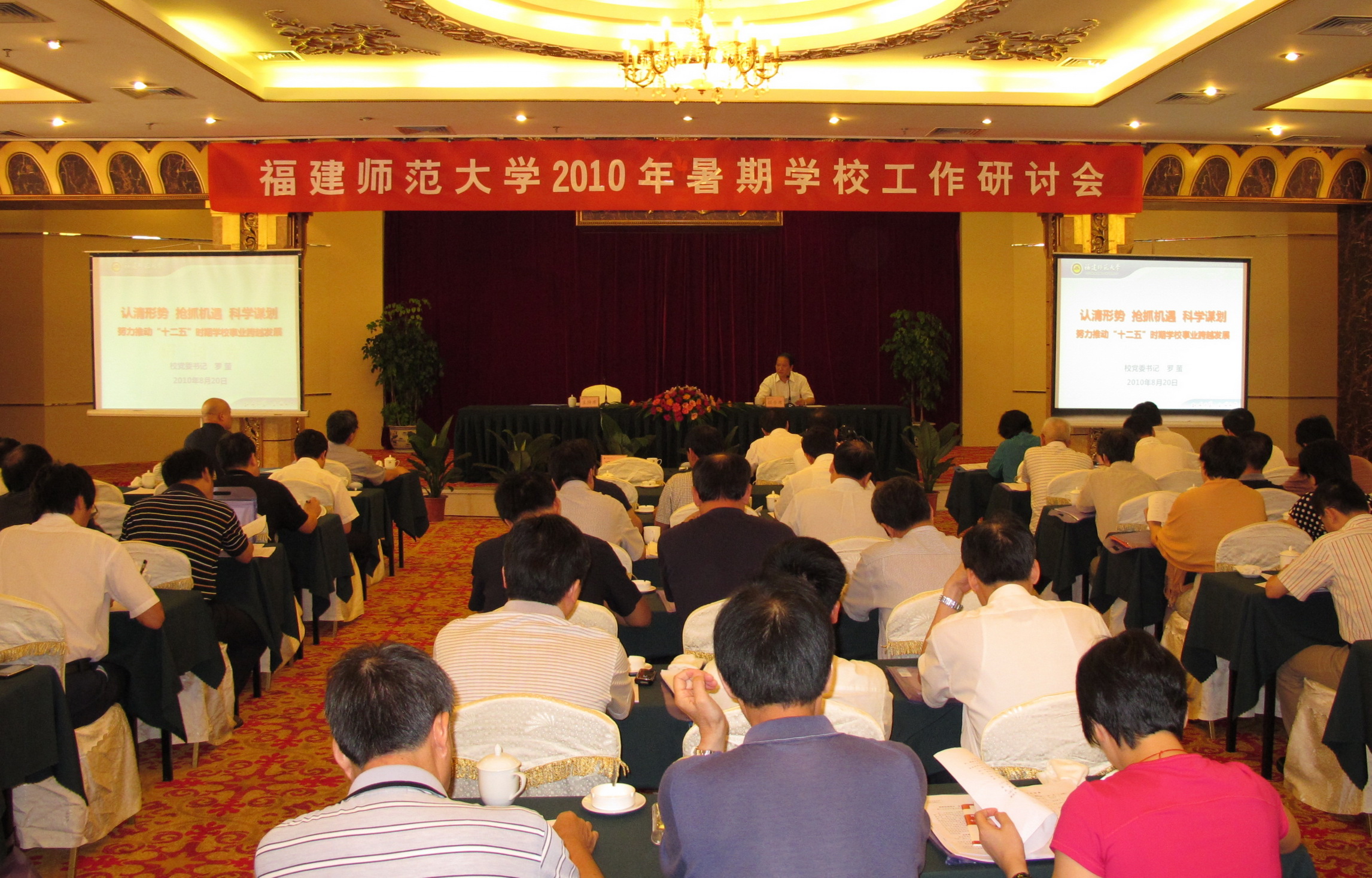罗萤书记代表校党委、校行政作了题为《认清形势抢抓机遇 科学谋划 努力推动“十二五”时期学校事业跨越发展》的主题报告,回顾了学校“十一五”以来事业发展取得的成绩,分析了当前和今后一段时期学校改革发展面临的机遇和挑战,提出了“十二五”时期学校事业发展的基本思路、重点工作和重要任务,号召全体与会人员本着对学校事业发展高度负责的态度,积极开展研讨,为科学编制学校“十二五”规划,推动学校跨越发展建言献策。报告后,与会人员围绕会议主题和罗萤书记的报告,就“十二五”时期学校的教师教育、学科建设、人才培养、科学研究、人才队伍建设和资源配置等热点和难点问题,分组开展了积极而富有成效的研讨。各组召集人还在会上做了交流发言。