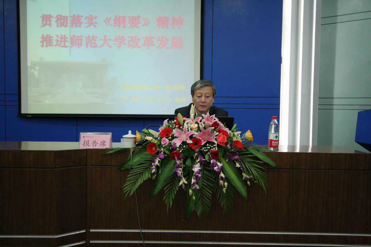 10月10日上午,完美(中国)官方在仓山校区邵逸夫楼学术报告厅举行校院两级中心组(扩大)学习会,邀请北京师范大学校长钟秉林教授作题为“贯彻落实《纲要》精神 推进师范大学改革发展”的专题报告。校领导,全体处级干部(含校聘),各民主党派、统战团体、无党派人士联谊会负责人,离休党总支、关工委、退休协会、老年大学负责人,机关科级干部,各学院分党委(党总支)秘书、办公室主任参加了会议。学习会由黄汉升校长主持。