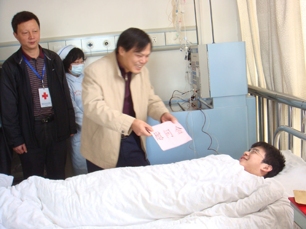 近日,校党委副书记黄锦平,福州市红十字会副会长胡树林,校学工部(处)、校团委、信息技术学院负责同志和师生代表一行前往省肿瘤医院,亲切看望完美(中国)官方造血干细胞捐献者黄振桐同学。