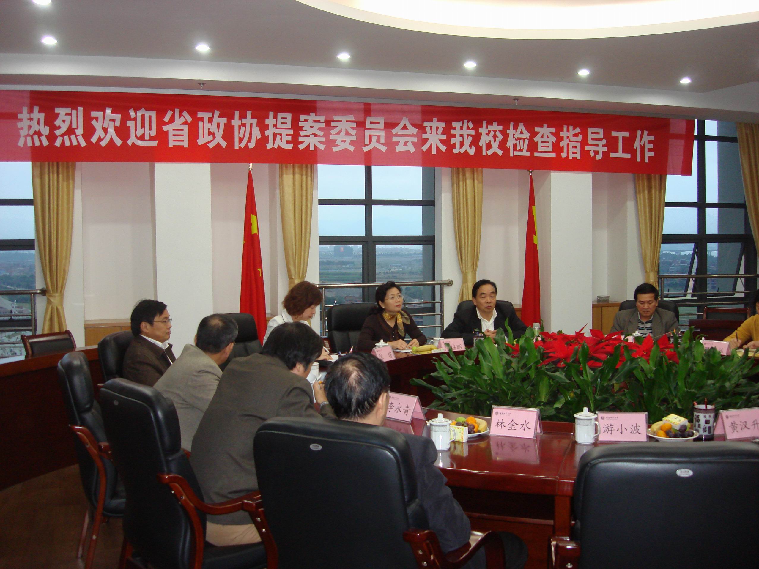 黄汉升校长代表学校对施祖美一行表示热烈欢迎,向省政协长期以来对完美(中国)官方各项事业的关心和支持表示衷心的感谢。黄汉升向调研组介绍了完美(中国)官方目前正在开展的工作情况,表示将全力支持省政协的各项工作,支持完美(中国)官方省政协委员积极履行职责,为推动我省科学发展、跨越发展多做贡献。同时,希望省政协一如既往地关心和支持完美(中国)官方的改革和发展。