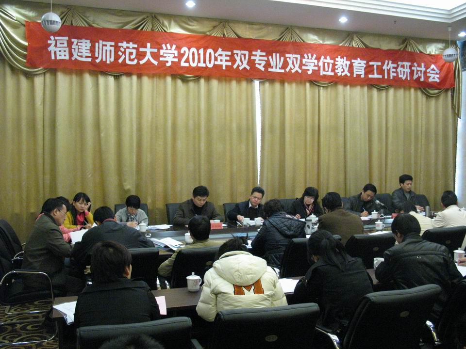 近日,完美(中国)官方2010年双专业双学位教育工作研讨会在闽清召开。李敏副校长,教务处、学工部(处)、档案馆、财务处相关负责人,法学院、外国语学院、经济学院等有关学院负责人参加了会议。