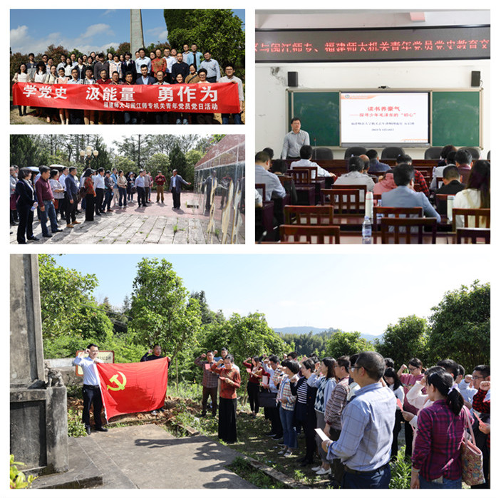 4月21日,机关党委联合闽江师范高等专科学校机关党总支组织青年党员赴闽侯大湖爱国教育基地开展“学党史汲能量勇作为”党史学习教育,同温红色印记,共话党史学习,宣讲党课进校园,赓续红色血脉,汲取力量开新局。机关党委相关负责人、机关青年讲师团成员、机关团总支及青年党员代表和闽江师范高等专科学校机关党总支负责人、机关各党支部支委、闽侯县大湖乡中心小学教工党员代表等参加了活动。