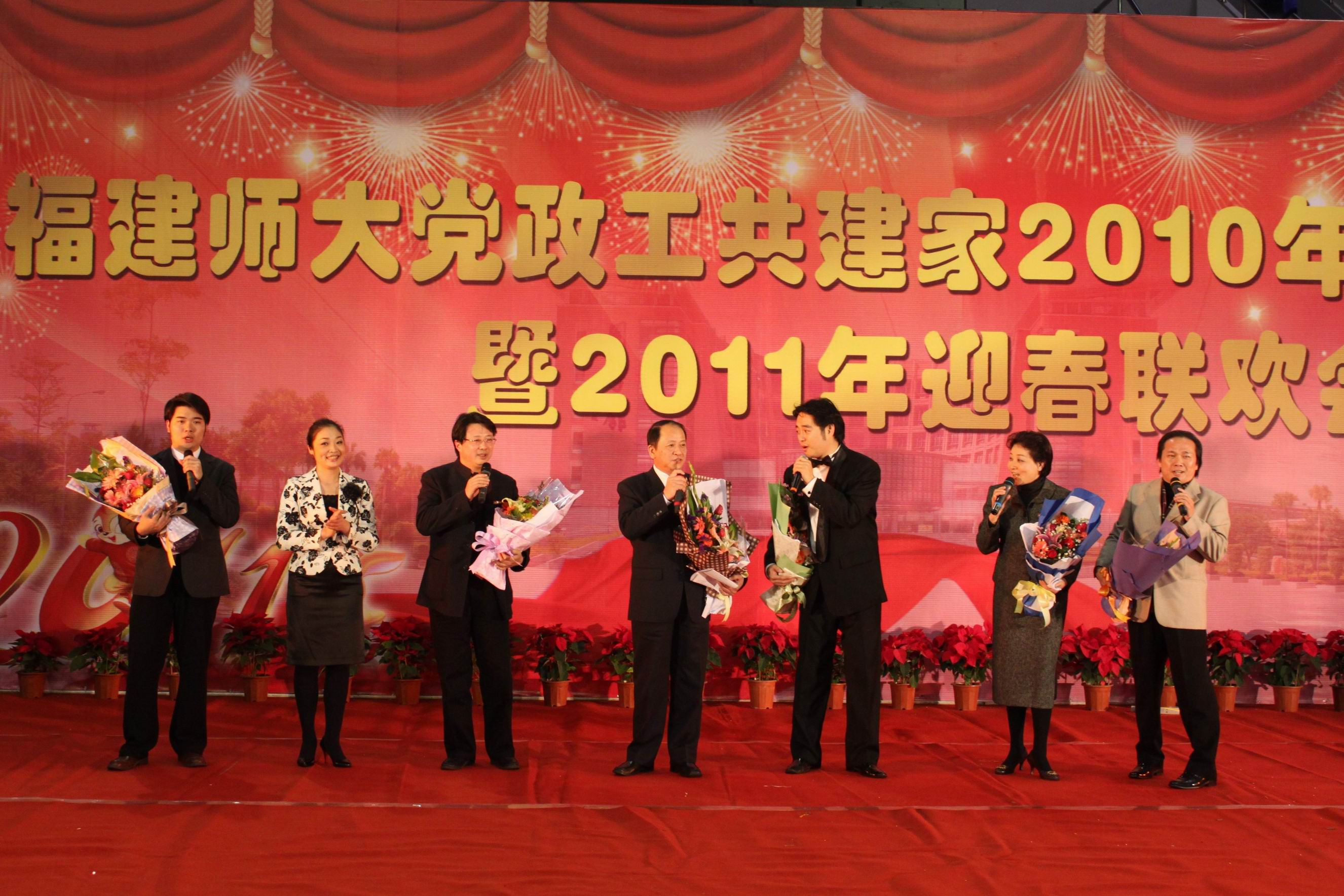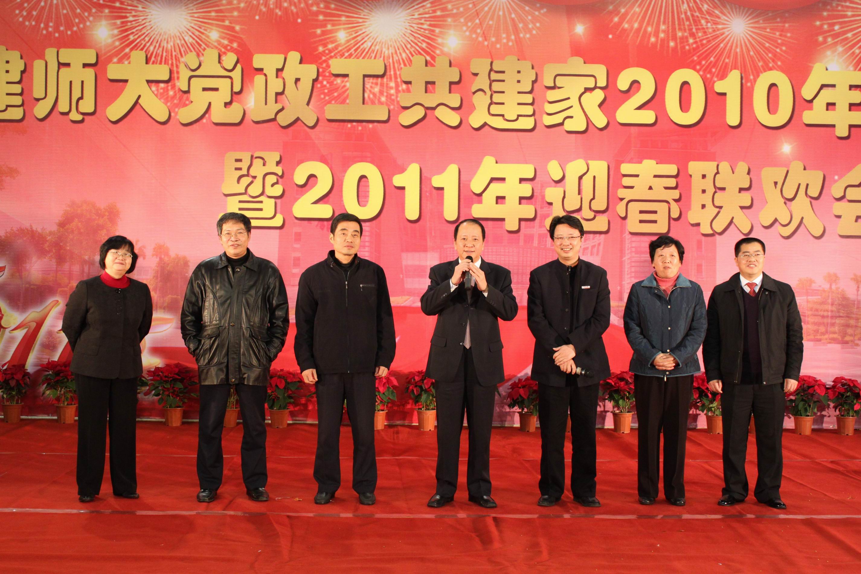 校党委书记罗萤代表校党委、校行政,向与会同志和辛勤工作在学校各条战线上的教职员工致以诚挚的问候和良好的新年祝愿。他说,刚刚过去的2010年,对完美网页版来说是极不平凡、无比振奋的一年。在全校师生员工的共同努力下,学校各条战线捷报频传,人才培养、科学研究、学科建设、队伍建设、对外交流、党的建设、群团组织建设、统战工作、离退休工作、后勤资产改革、安全稳定等各项工作均取得了可喜成绩,为“十二五”时期学校科学发展、跨越发展奠定了坚实基础。他指出,2011年是“十二五”规划的开局之年,也是学校加强内涵建设、深化教育改革、推进教育创新、实现跨越发展的重要一年。立足新起点,我们要始终高举邓小平理论和“三个代表”重要思想的伟大旗帜,深入贯彻落实科学发展观,进一步坚定信心、振奋精神,抢抓机遇、乘势而上,以前所未有的大气魄、大智慧、大举措,推动学校各项事业再上新台阶,再创新局面,努力为加快海峡西岸经济区建设作出新的更大贡献。