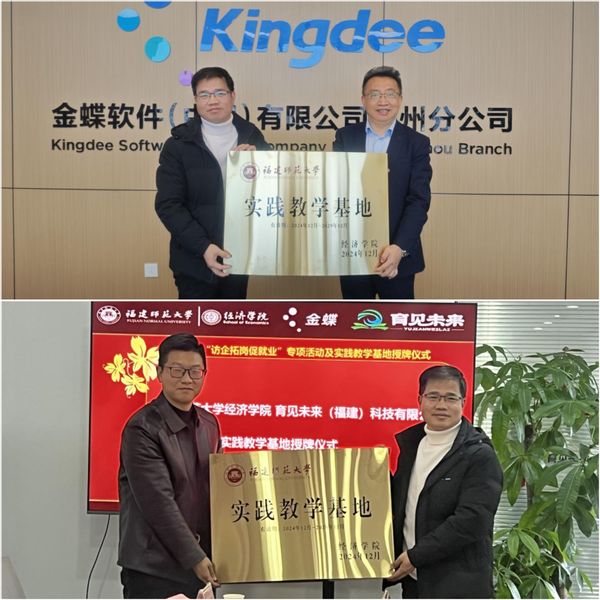 12月20日,经济学院深入金蝶软件(中国)有限公司福建省公司、育见未来(福建)科技有限公司开展访企拓岗暨实践教学基地挂牌仪式。学院党委副书记叶龙祥、副院长戴双兴,财会系党支部书记张业圳、系主任及财务管理专业负责人秦晓东等参与活动。