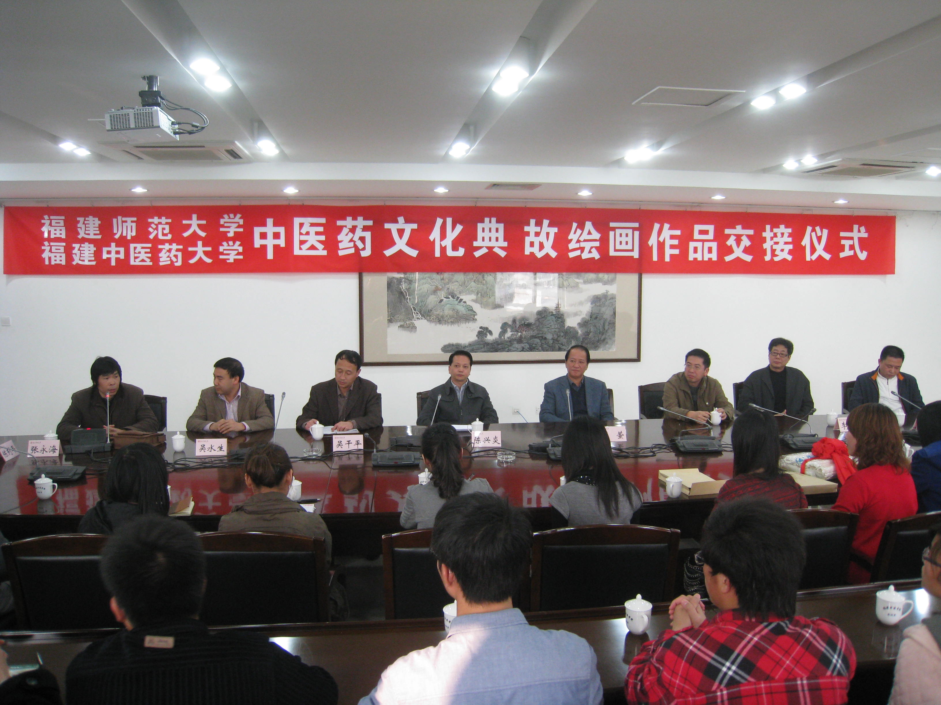 近日,中医药文化典故绘画作品交接仪式在福建中医药大学举行。校党委书记罗萤,福建中医药大学副校长陈兴炎,两校有关部门负责人、全体主创人员出席了交接仪式。