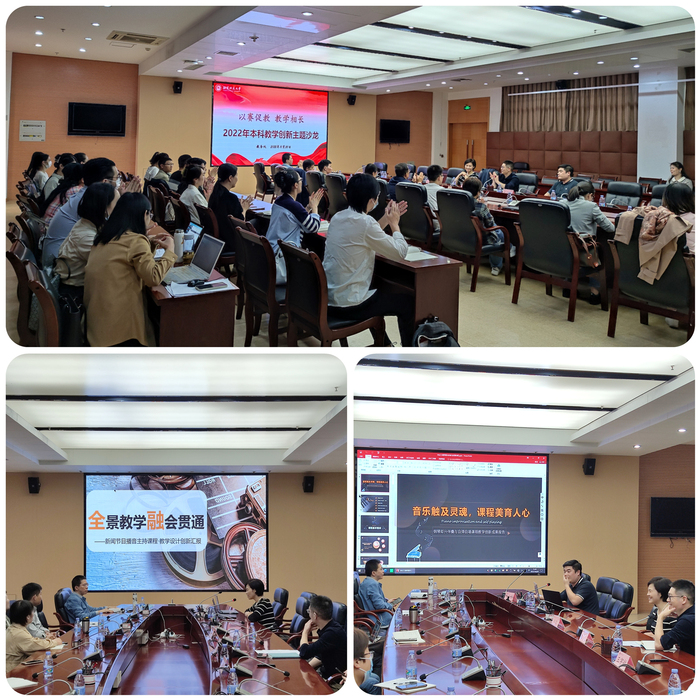 两位老师通过结合自身主讲课程和参赛经历,围绕什么是教学创新、为何要进行教学创新、怎样进行教学创新等内容,进行了认真细致的分析和讲解,为与会教师进行教学创新设计和教学实施提供了具有较强针对性和可操作性的指导。郑甦教授以《全景教学,融会贯通》为主题,围绕课程概况、教学理念、课程思政、过程方法考评与反馈以及教学创新成果等方面作了阐述,王宇航老师以《音乐触及灵魂,课程美育人心》为题,从课程基本情况、教学中存在的真实问题、教学目标、创新思路与举措以及如何丰富考核评价数据和开展课程创新作了分享。