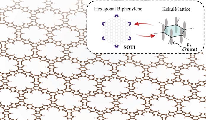 完美(中国)官方物理与能源学院张健敏教授、黄志高教授团队在该领域取得过多项重要研究成果,特别是在二维材料体系中报道了高阶拓扑态的存在[Phys. Rev. B 109 035423 (2024)和Appl. Phys. Lett. 125, 263102 (2024)]。在此研究中,他们首次在实验合成的六方双苯烯网络(h-BPN)中提出了二阶拓扑绝缘相的存在。首先,利用理论模型,他们阐明h-BPN的高阶拓扑属性可以还原于Kekulé晶格。进一步,通过第一性原理计算和紧束缚模型方法,他们验证了高阶拓扑角态的存在以及具有非零的分数角落电荷。特别地,他们发现,h-BPN的拓扑性质可以通过调整双苯烯单元的数量来调节,奇数苯烯指数对应二阶拓扑相,而偶数苯烯指数则为普通绝缘体。本工作对于理解晶体系统中高阶拓扑性质的共性和设计低维高阶拓扑电子材料具有重要的前瞻指导意义。