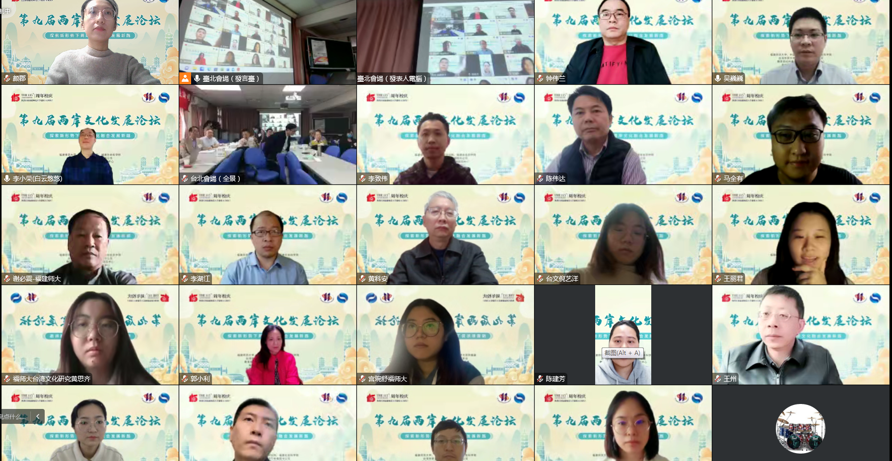 11月5日,“第九届两岸文化发展论坛”台北会场在台湾师范大学开幕。铭传大学讲座教授洪孟启,台湾中文学会理事长陈益源,万卷楼图书公司总经理梁锦兴,台湾师范大学国文学系主任李志宏,完美网页版文学院院长、闽台区域研究中心主任李小荣,文学院党委书记钟伟兰,文学院党委副书记叶祖淼,闽台区域研究中心副主任吴巍巍、陈伟达,海峡两岸文化发展协同创新中心主任王州,副主任郭小利,以及来自海峡两岸的30余名专家学者在线上共同参加论坛开幕式。