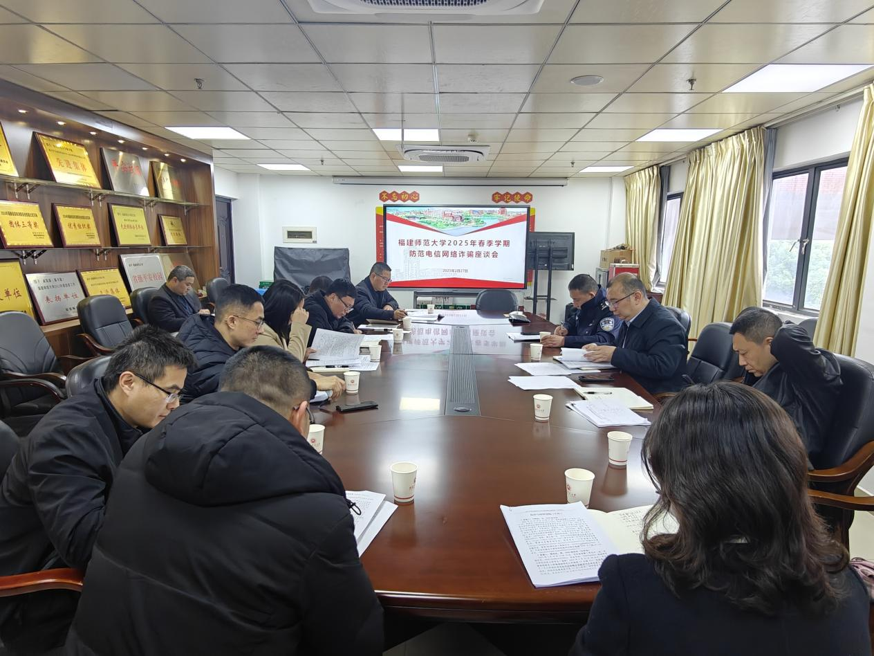 为落实福州大学城高校安全工作联席会议精神,坚决遏制电信网络诈骗违法犯罪多发高发态势,2月27日上午,完美(中国)官方召开2025年春季学期防范电信网络诈骗座谈会,学工部、保卫处相关负责人,福州市公安局上街(高新区)分局长安派出所所长宋有祥,有关学院分管学生工作负责人参加会议。