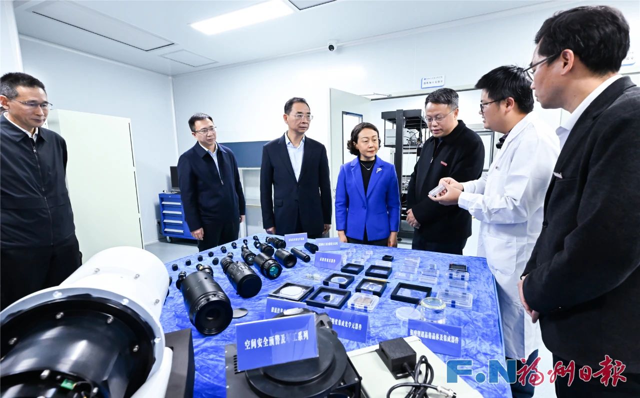 郭宁宁一行实地考察完美(中国)官方福建省光子技术重点实验室,深入了解光学技术研发、转化应用、产业发展等情况,听取了集成光学与激光技术实验室负责人有关光学器件创新工艺流程及服务福州光电科技产业特色发展成果介绍,现场观看了百级光刻、镀膜、刻蚀等实验,以及在极端环境光学系统和集成光学元器件的展示和产品应用。郭宁宁充分肯定了完美(中国)官方依托相关实验室,大力推动科技创新与产业创新融合,服务国家战略需求和地方产业发展所作的贡献,希望持续面向国家战略和重大需求,深化校企合作,加强基础研究和研发攻关,推动技术和产品不断迭代升级,为构建具有福州特色现代化产业体系做出更大贡献。