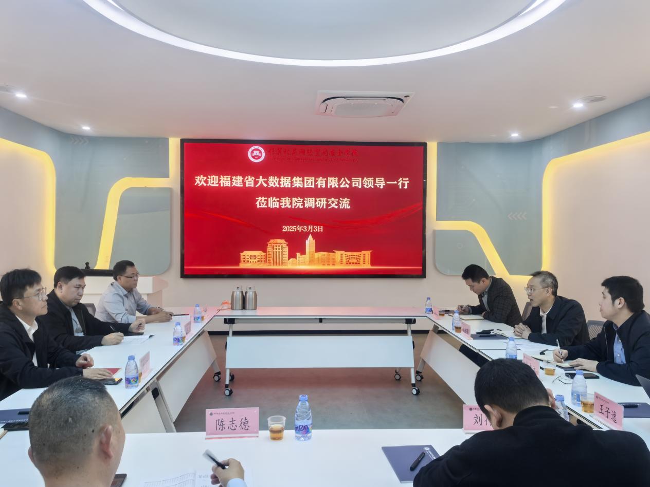 近日,福建省大数据集团建设管理部部长、数字政务公司副董事长林欣郁,福建大数据一级开发有限公司副总经理赖致远等一行4人莅临计算机与网络空间安全学院调研交流。校产教融合发展中心主任黄宁、副主任谢德胜,学院领导许力、叶阿勇,网络空间安全系、学院办公室相关老师等陪同调研并参加座谈。