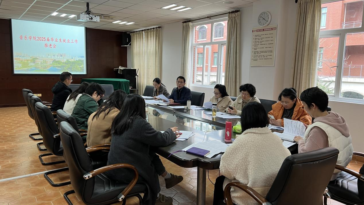 近日,音乐学院召开2025届毕业生就业工作部署会议,院领导苏经强、马秋华、陈新凤、叶佳亮,各科室负责人、全体辅导员参加会议。