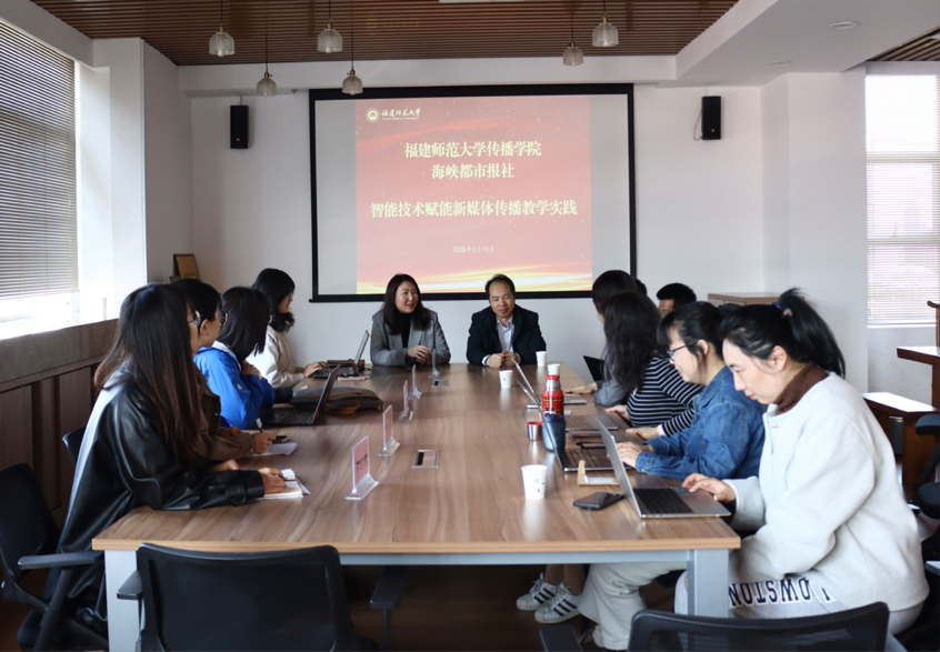 3月19日下午,海峡都市报肖颖一行到传播学院就“智能技术赋能新媒体传播教学实践”主题开展座谈,传播学院副院长连水兴,院务委员宋美杰、叶勤及各专业教师代表参加。