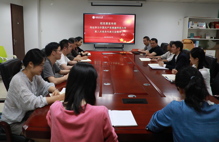 5月27日下午,校党委宣传部召开会议传达学习校第八次党代会精神,抓好学习宣传和贯彻落实工作。会议由校党委宣传部部长黄茂兴主持,部门全体成员参加了会议。