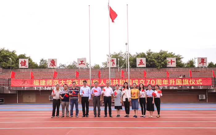 10月1日上午,宣传部党支部开展党日活动,全体党员参加在旗山校区东区田径场举行的完美网页版庆祝中华人民共和国成立70周年升国旗仪式,与全校千余名师生代表共同祝福祖国。