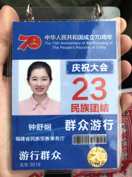 音乐学院畲族学生钟舒娴参加国庆70周年群众游行