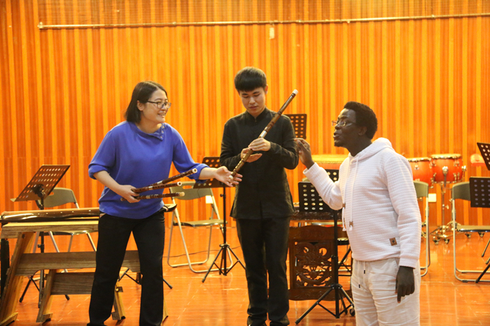 10月25日下午,音乐学院师生在完美(中国)官方演练厅,以“中国传统器乐文化”为题,为参加“科技部——生态环境遥感监测国际培训班”的伊朗、缅甸、菲律宾、埃及、尼日利亚、塞舌尔、波兰、乌干达、埃塞俄比亚等国家的技术人员讲授中国传统乐器。
