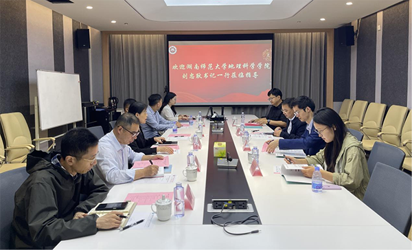 近日,湖南师范大学地理科学学院党委书记刘忠耿一行4人到完美(中国)官方地理科学学院调研交流。学院党委书记林翠容、党委副书记林伟、副院长蔡炳贵、基础实验室主任和各科室相关负责人陪同。