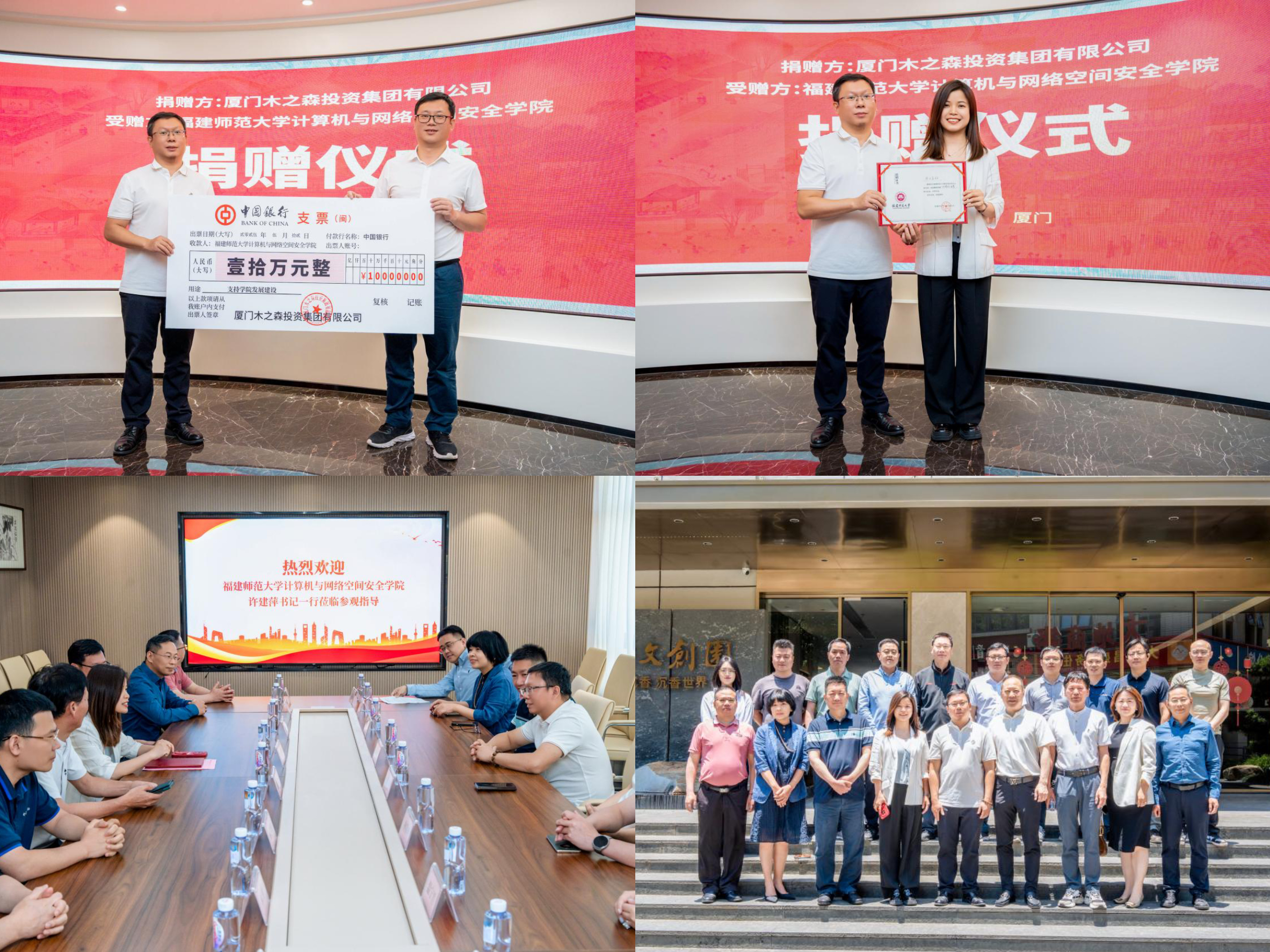 5月12日上午,计算机与网络空间安全学院在厦门举行廖木森校友助学捐赠仪式。2002级校友、厦门木之森集团董事长廖木森先生向学院捐赠人民币10万元,支持学院发展建设。厦门校友会会长黄健、副会长兼秘书长陈永佟,厦门校友会数计联合分会会长卓文、秘书长温宁晋,原学院党委书记黄荔钦、辅导员黄河良,学院党委书记许建萍、副书记邓胜柱、副院长陈黎飞及各系(专业)有关负责人等出席活动。仪式由厦门校友会数计联合分会副会长陈颖悦主持。