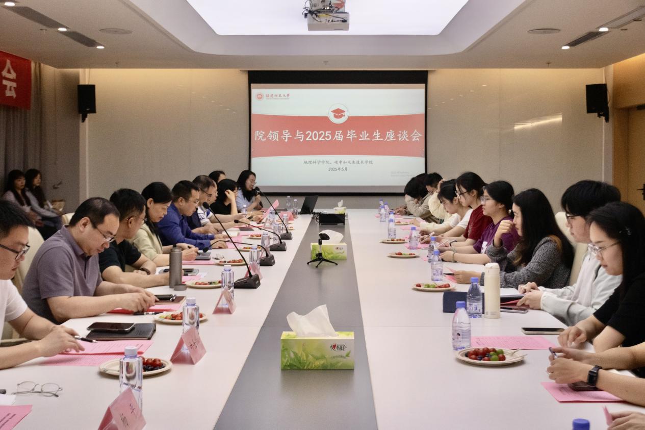 5月14日,地理科学学院召开2025届毕业生代表座谈会。学院党政领导班子成员、系主任、毕业班辅导员以及2025届毕业生代表参加。