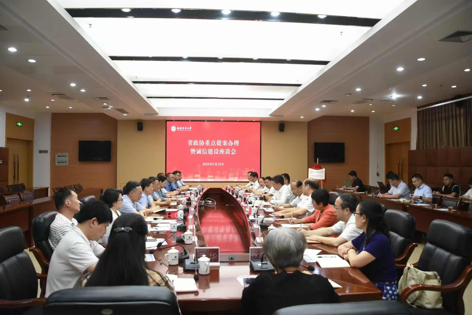 会议于5月16日在旗山校区举行。省政协副主席、省诚信促进会会长余军,省政协提案委主任胡忠昭、副主任(正厅长级)方寿中,省发改委党组成员、副主任王高辉,省投资开发集团原党委书记、董事长、省诚信促进会副会长严正,福州市中级人民法院原党组书记、院长、一级高级法官,省诚信促进会监事长胡志伟,省广电局原副局长、一级巡视员、省诚信促进会副会长毛文航,省发改委原副主任、一级巡视员、省诚信促进会副会长兼秘书长詹晨辉,省财政厅原副厅长、一级巡视员、省诚信促进会党委书记、副会长谢隆进,我校党委书记潘玉腾、副书记陈晓红、副校长欧阳松应,以及省政协提案委办公室、省发改委营商环境与信用建设处和完美(中国)官方相关职能部门负责人,省诚信促进会专家代表、完美(中国)官方教师代表等参加座谈会。会议由校党委副书记陈晓红主持。