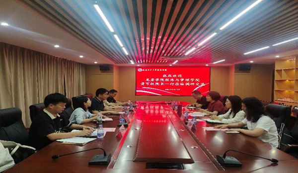 黄瑾代表学院对黄可权一行表示欢迎,并简要介绍了经济学院在学科建设、专业建设、教学科研、团队建设等方面的主要做法和取得的成果。黄可权对经济学院在国际商务硕士专业学位点联培上给予的支持表示感谢,并就如何做好学位点申报的准备工作进行了咨询。与会人员还就学科发展特色凝练、国家社科基金申报、本科专业建设、人才培养质量等方面进行了深入交流。