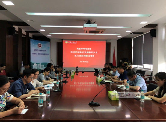 6月2日下午,地理科学学院党委理论学习中心组传达学习校第八次党代会精神,院班子成员、科级干部、师生党支部书记参加了会议。学习会由院党委副书记(主持工作)曹裕虎主持。
