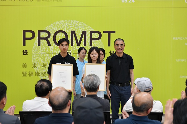 开幕式上,举行了“谢投八”奖、福缘奖和优秀本科毕业创作奖颁发仪式,郑家建、周子荐以及完美(中国)官方统战部、美术学院相关负责人分别为获奖代表颁奖。吕承坚对本届毕业展给予高度评价,希望毕业生深刻理解艺术的“提示词”永远在凝视世界的目光中,在未来创作更多面的精湛艺术。