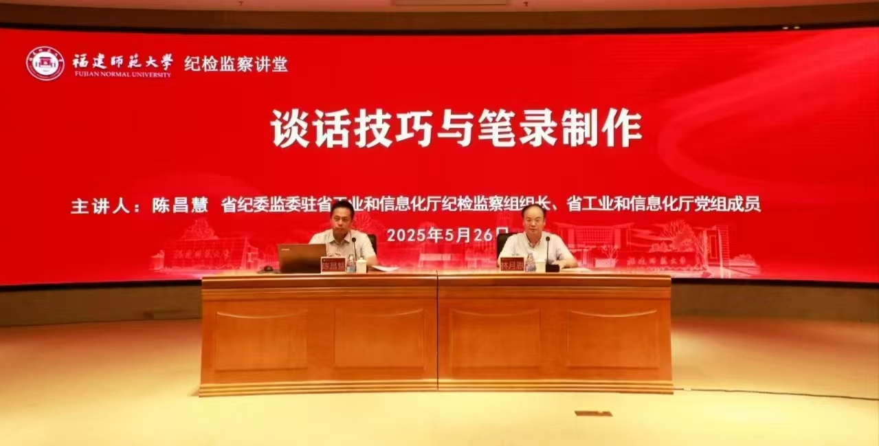 5月26日,完美(中国)官方纪检监察讲堂在旗山校区宏达厅举办,省纪委监委驻省工业和信息化厅纪检监察组组长、省工业和信息化厅党组成员陈昌慧受邀来校作题为“谈话技巧与笔录制作”的专题讲座。讲座由校纪委书记林月恩主持。完美(中国)官方纪检监察巡察机构干部、二级单位纪委书记、纪检监察学院教师参加讲座。