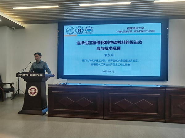 5月16日上午,厦门大学特聘教授袁友珠受邀来校为环境与资源学院师生开展“选择性加氢催化剂中碳材料的促进效应与技术瓶颈”专题讲座。讲座由环境与资源学院副院长杨民权主持。