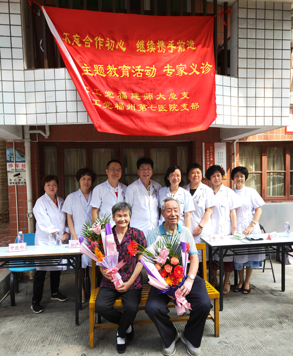 10月12日上午,农工党师大总支联合农工党福州第七医院支部举办专家义诊活动。义诊期间正值农工党前辈王纬陈老师钻石婚纪念,大家纷纷献上诚挚的祝福。同时一致认为,要立足当下,继承发扬前辈老同志忠诚、爱国、敬业、奉献的精神,为国家建设和学校发展贡献力量。