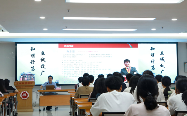 6月12日,副校长欧阳松应教授在理工楼13号楼学术报告厅,为生命科学学院本科生讲授“基因里的传承——从学院发展史看生科人的未来使命”专题思政课。