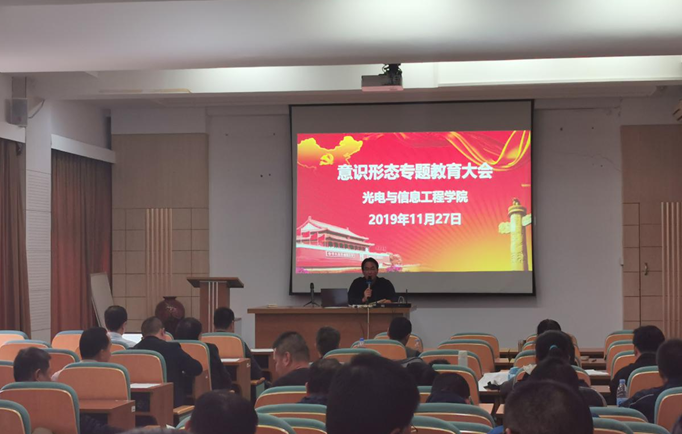 1127日下午,光电与信息工程学院召开意识形态专题教育大会,学院全体教职工参加了会议,院党委书记侯建雄主持会议。