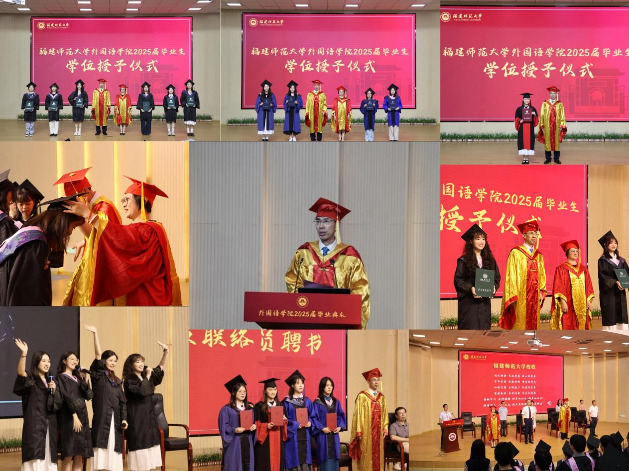 6月15日下午,外国语学院2025届学生毕业典礼在陈明金楼多功能厅举行。学院党政领导、各系部主任、教师代表、全体辅导员、2025届全体毕业生及家长代表出席典礼。典礼由学院党委副书记肖良建主持。