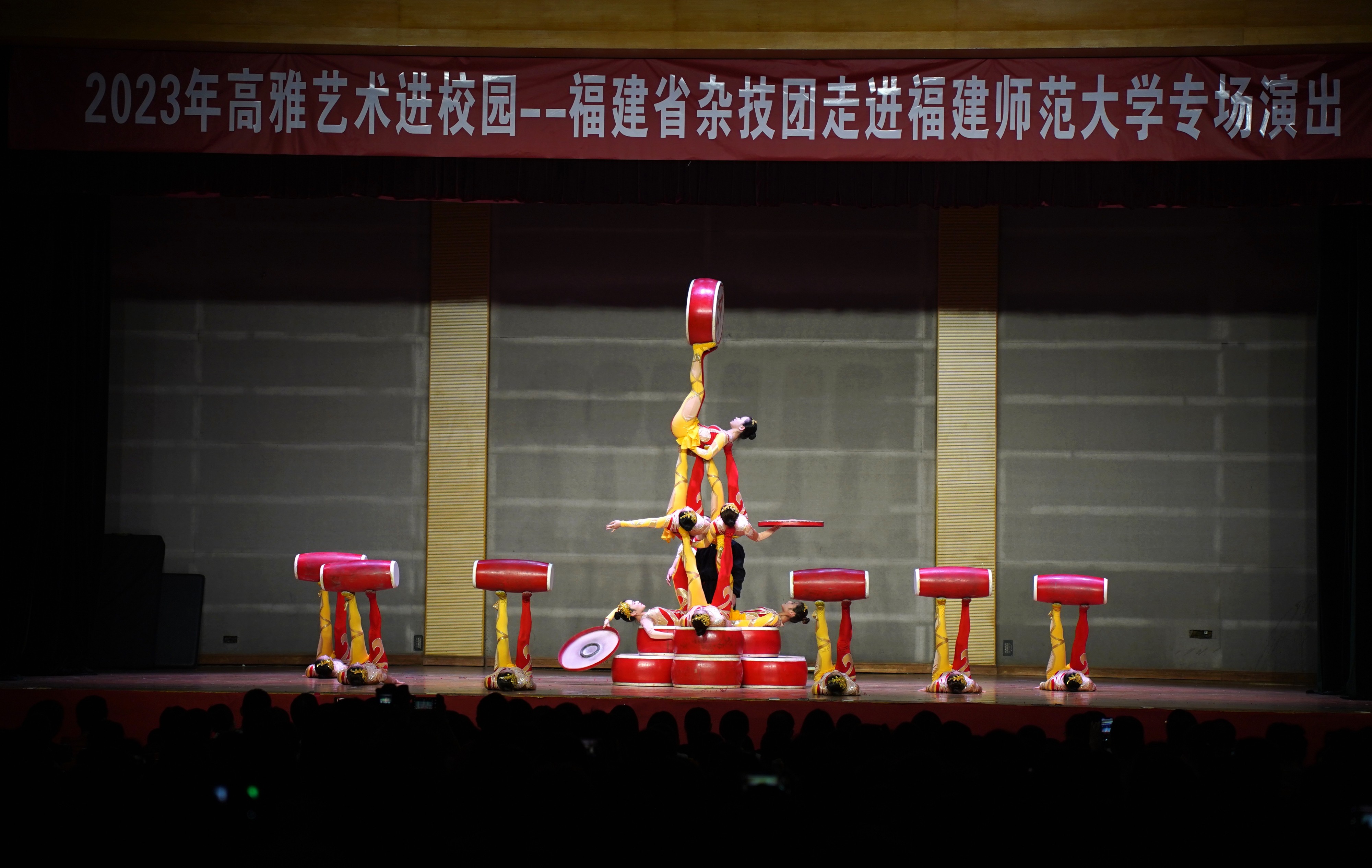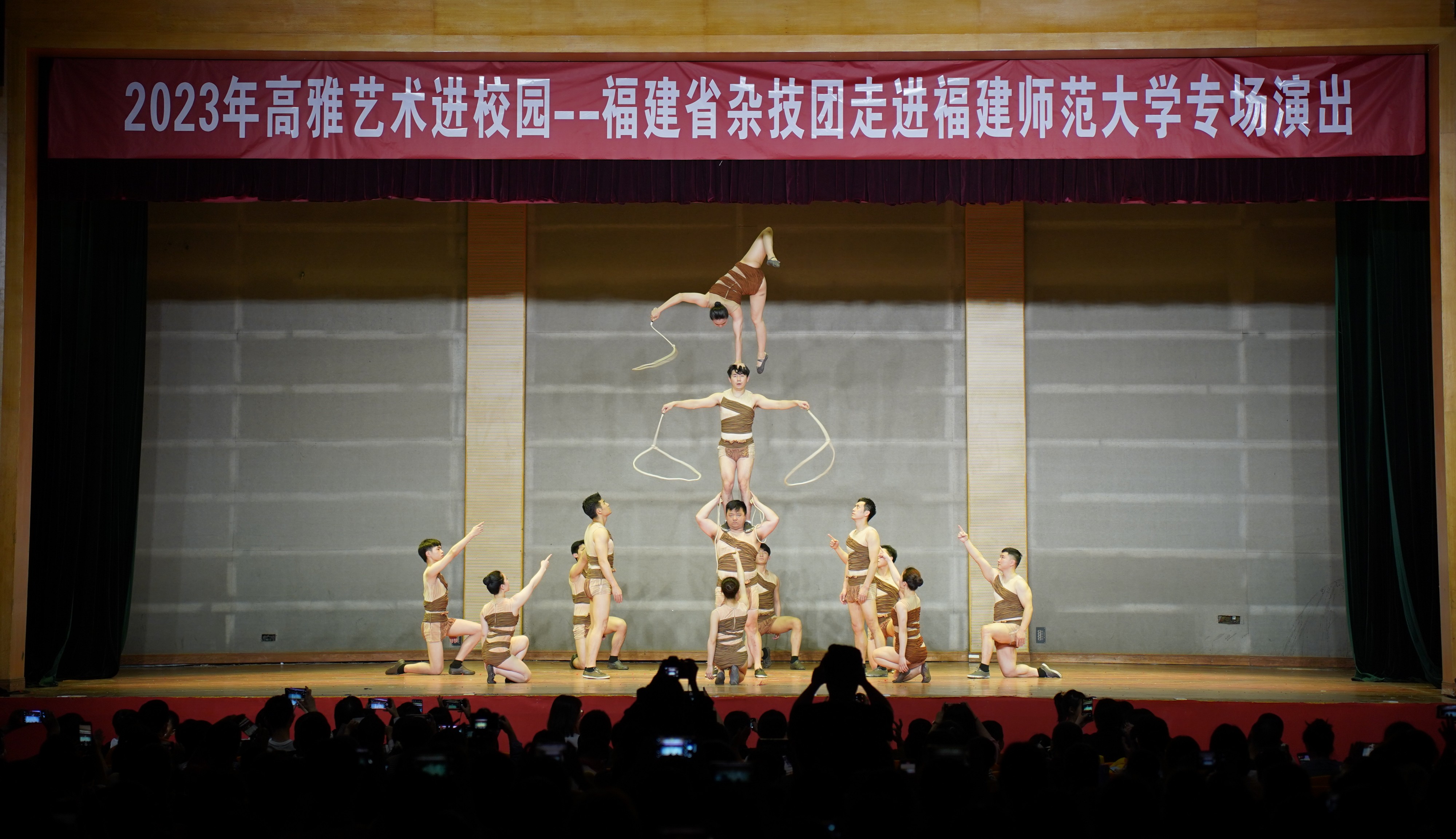 近日,2023年首场高雅艺术进校园福建省杂技团专场在完美(中国)官方旗山校区青春剧场举行,共有1000余名师生到场观看。
